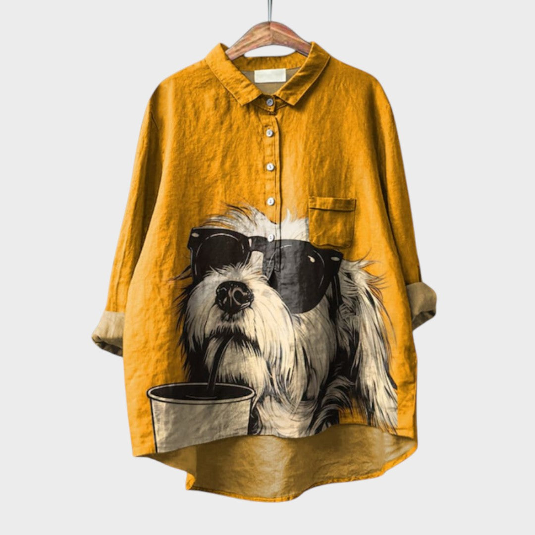Joana - Blusa elegante de manga comprida com um decote pontiagudo
