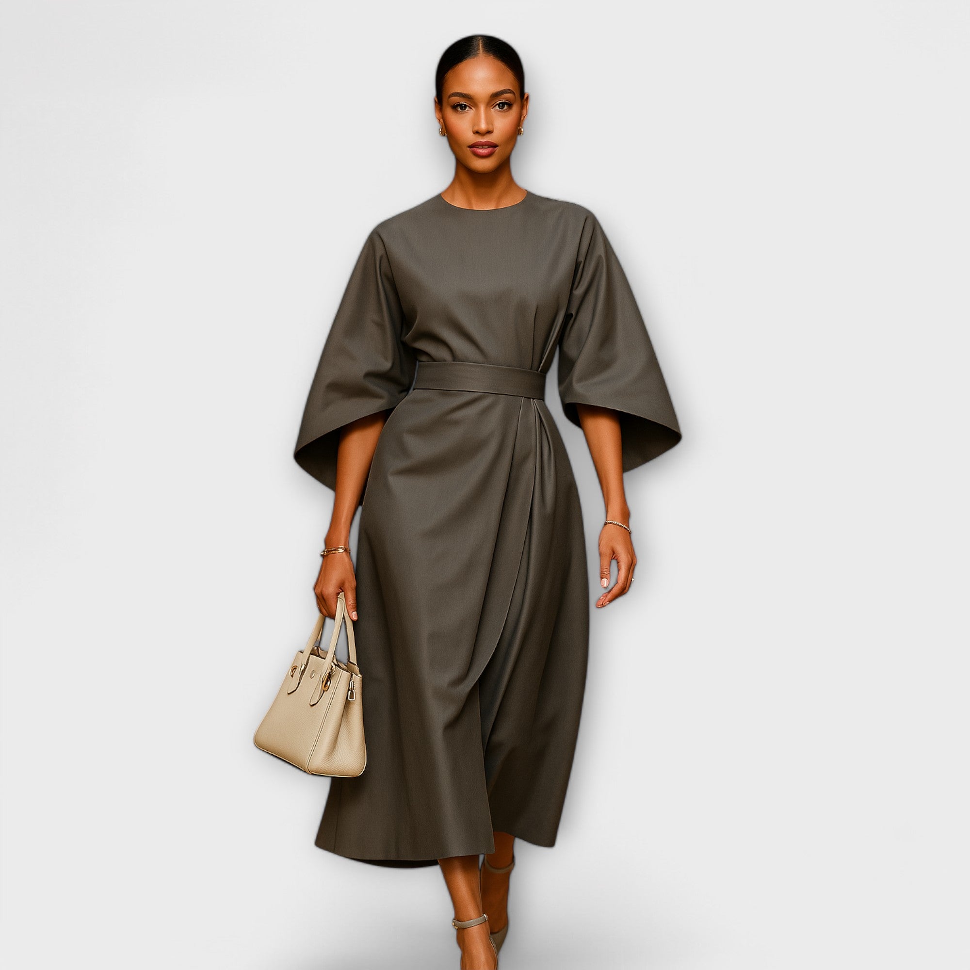 Sonia - Vestido elegante com mangas em forma de lanterna e cinto