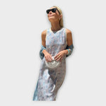 Vestido Máxi com Padrões Lineares e Fluiência Leve